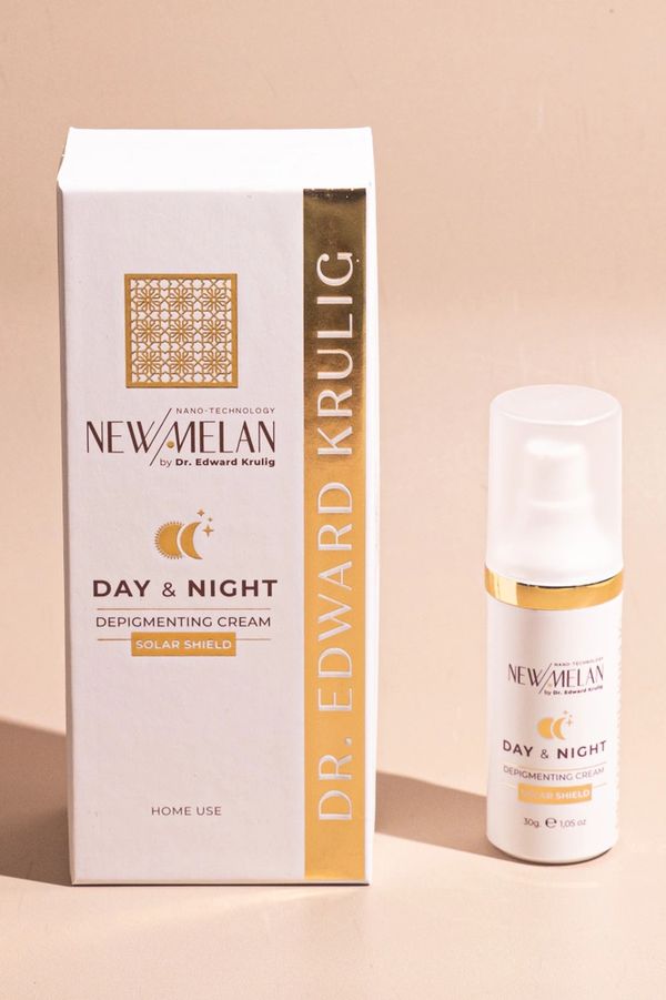 NewMelan Day & Night del Dr. Eduardo Krulig es la combinación de diversos principios activos que bloquean todas y cada una de las etapas de la melanogénesis excesiva produciendo ecualización del tono de la piel y desapareciendo las manchas hipercrómicas en un breve período de dos semanas.