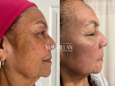 Remueve las capas superficiales de la epidermis, donde se encuentra el pigmento melanina en exceso. Produce una suave descamación. Es el inicio del tratamiento NewMelan para ser realizado en la consulta del médico.